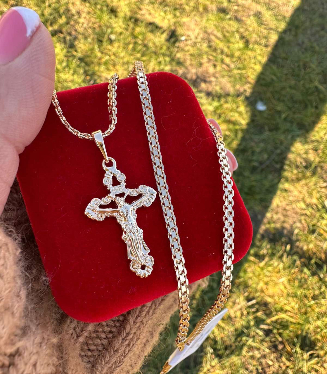-17%Набір Xuping Ланцюжок 55 см ( 4 мм ) + Хрестик 3,5 см (18к колір золота 585п) 77-099